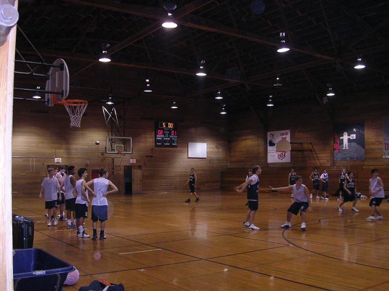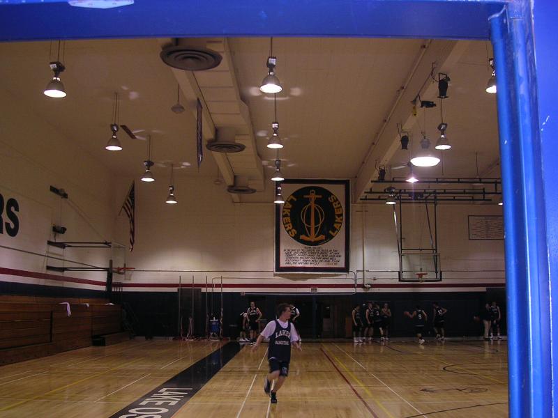Varsity team practicing in the main gym soon to be the old gym. |