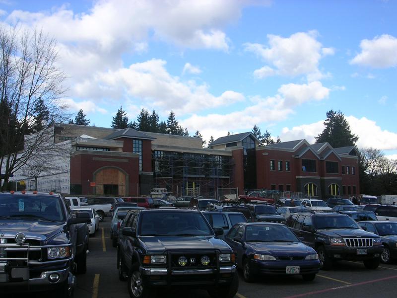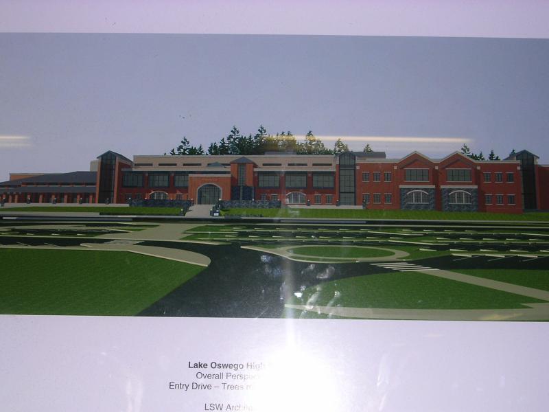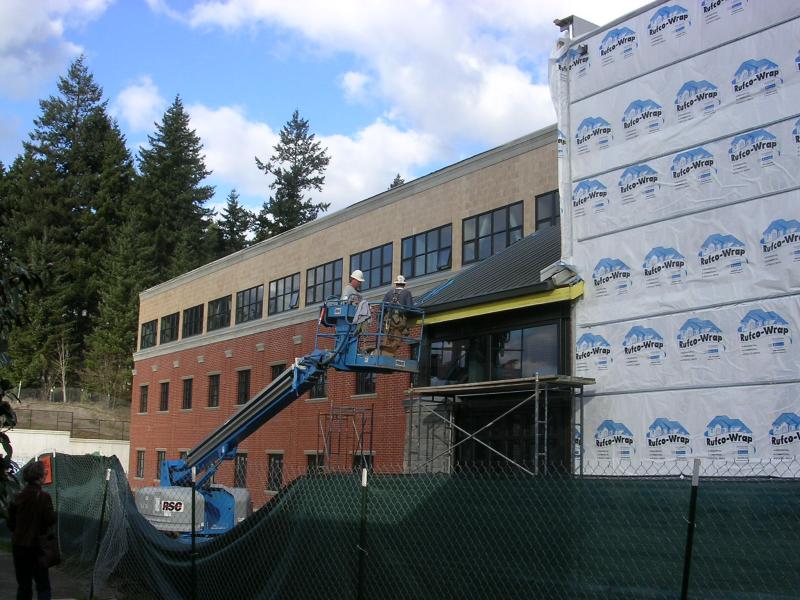 Close up view of the remodel of Lake Oswego High. |