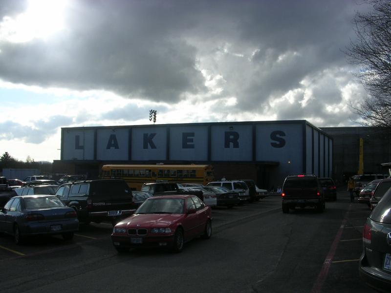 View of the old main gym from the school parking lot. |