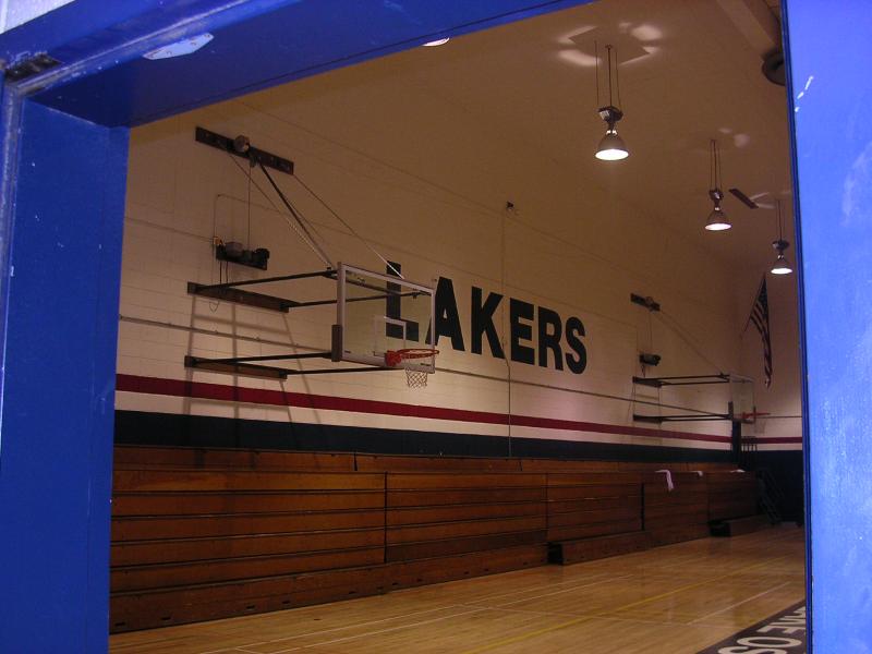 The old entrance to the school will go away soon. The big blue building is the old back gym soon to be torn down. |