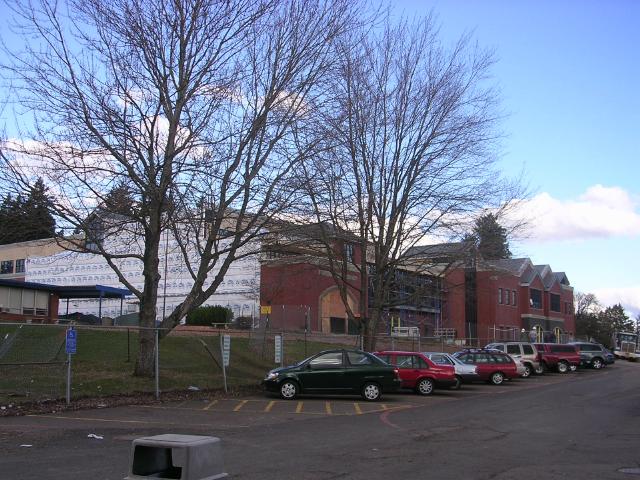 View of the remodel from the school parking lot. |