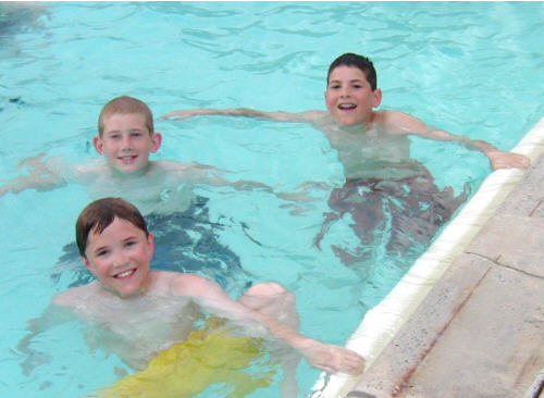 Andrew, Kevin, and Trevor take a swim our last day there
